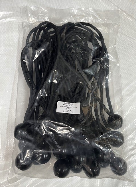 Zwart: Elastiek, mantel PP met kunststof bal.